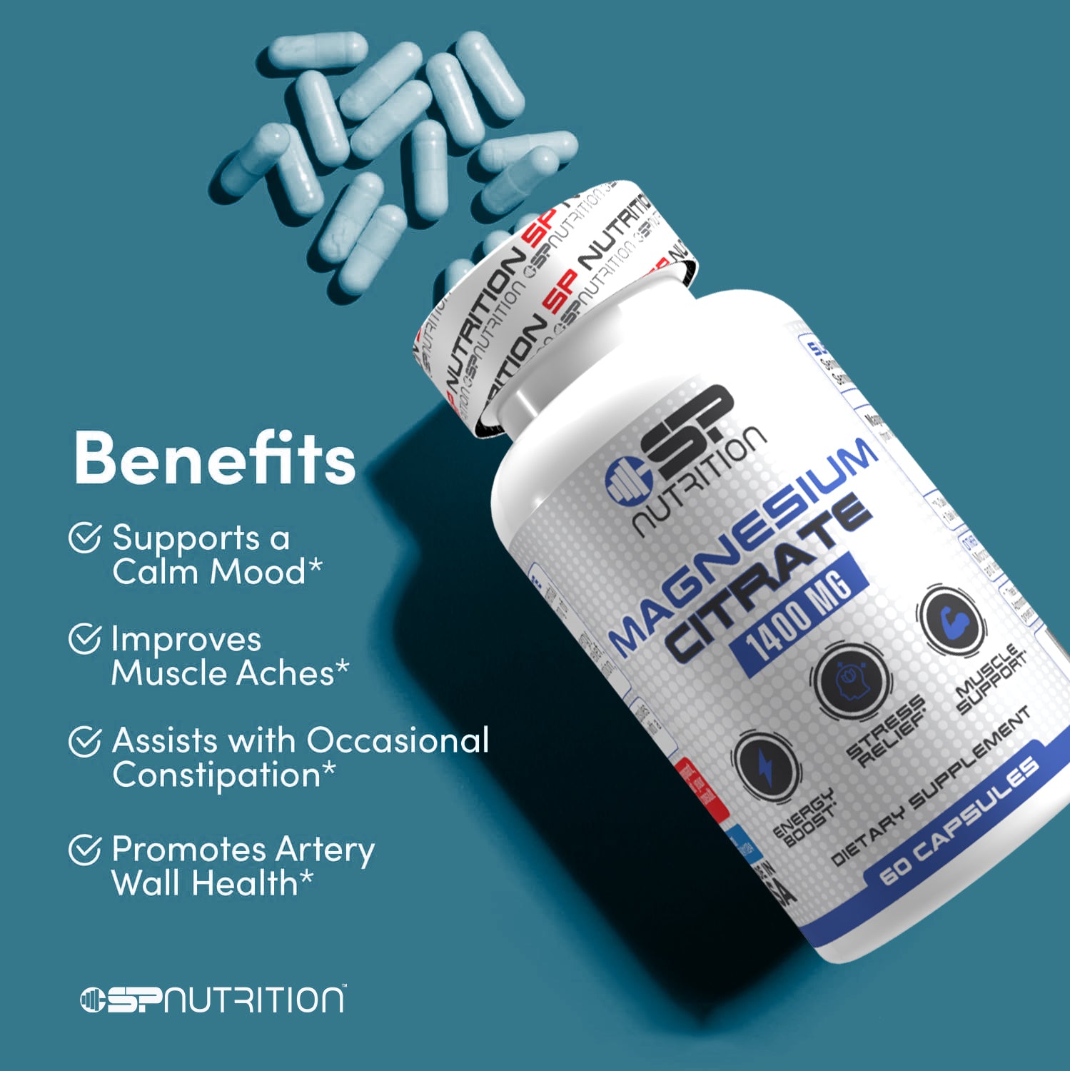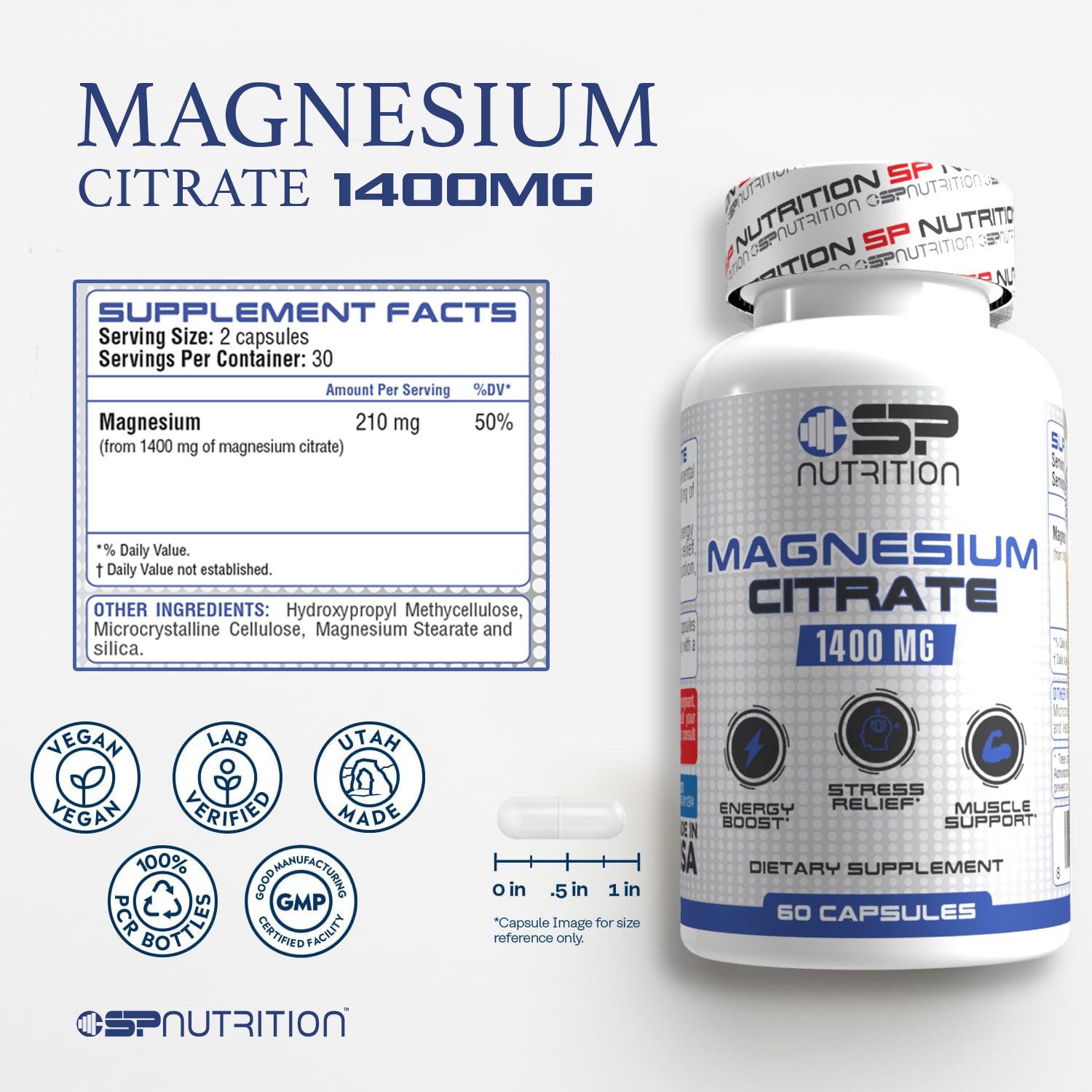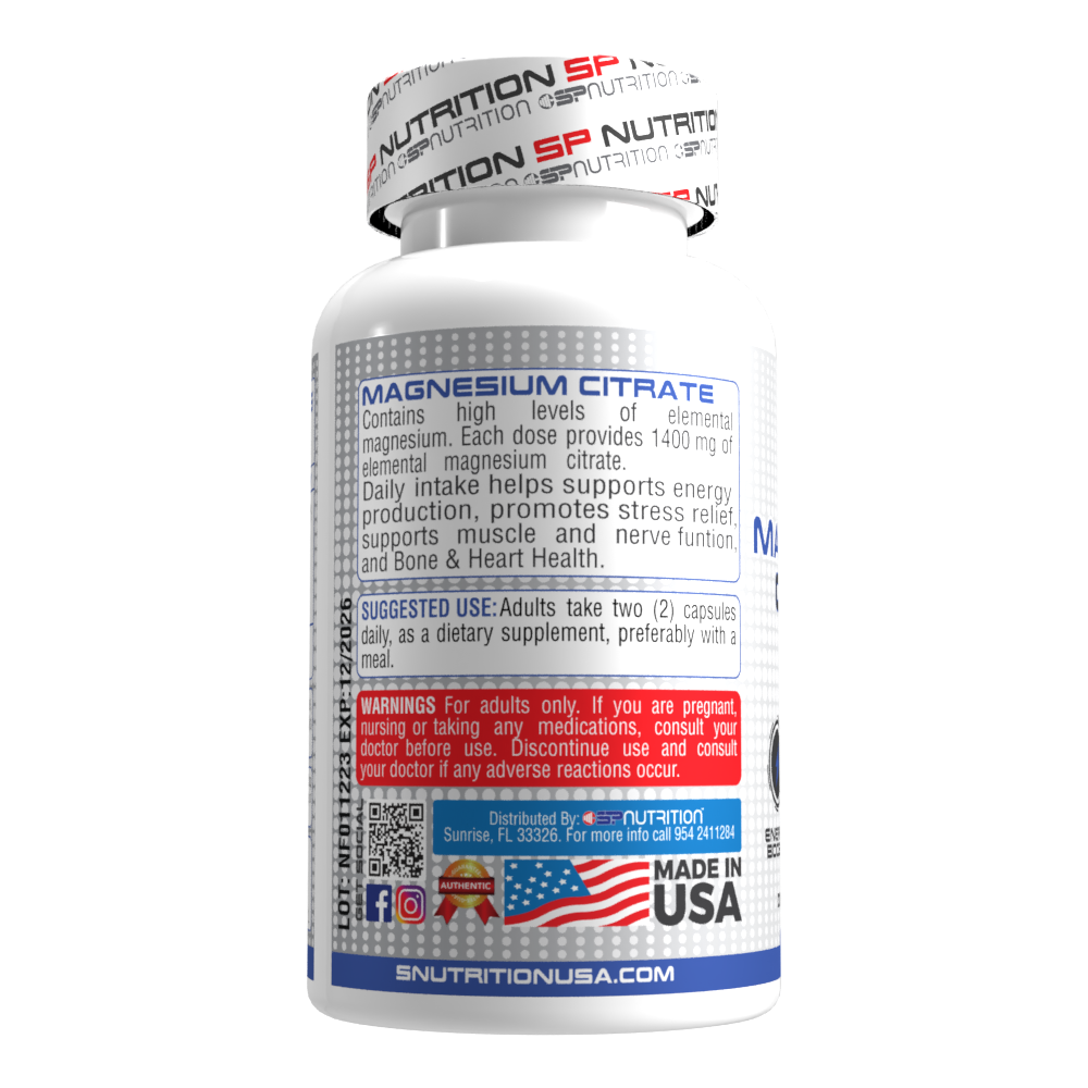 Experience the power of Magnesium Citrate 1400 mg – a highly absorbable form of magnesium designed to support energy production, muscle relaxation, restful sleep, bone strength, and heart health. Each serving of just 2 easy-to-swallow capsules delivers a potent dose of magnesium for daily wellness.