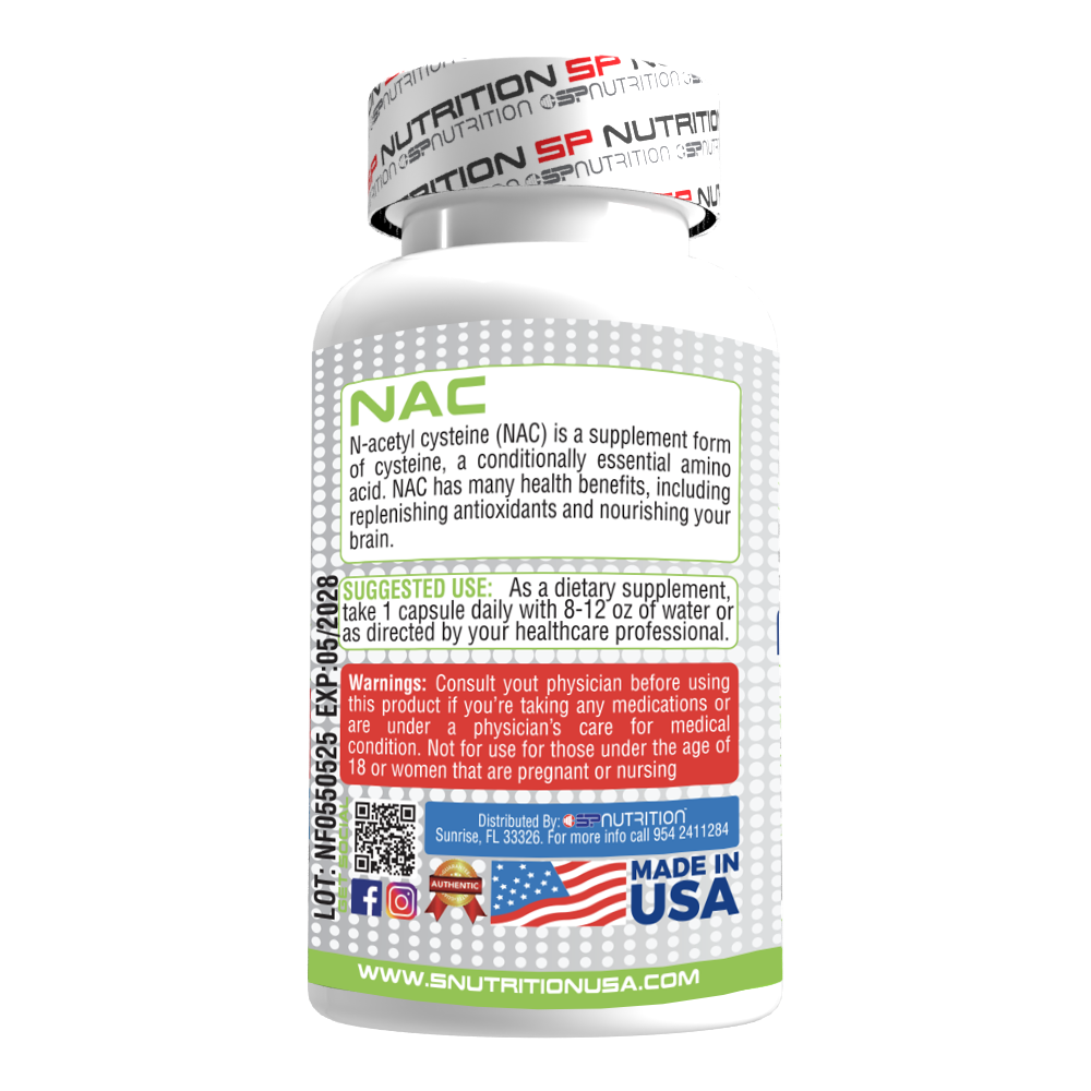 SP Nutrition's NAC (N-Acetyl L-Cysteine) is a powerful dietary supplement designed to support your body's natural defenses and enhance your overall wellness. Each capsule delivers a potent dose of NAC to help promote lung health, boost immunity, detoxify the liver, and improve brain function.