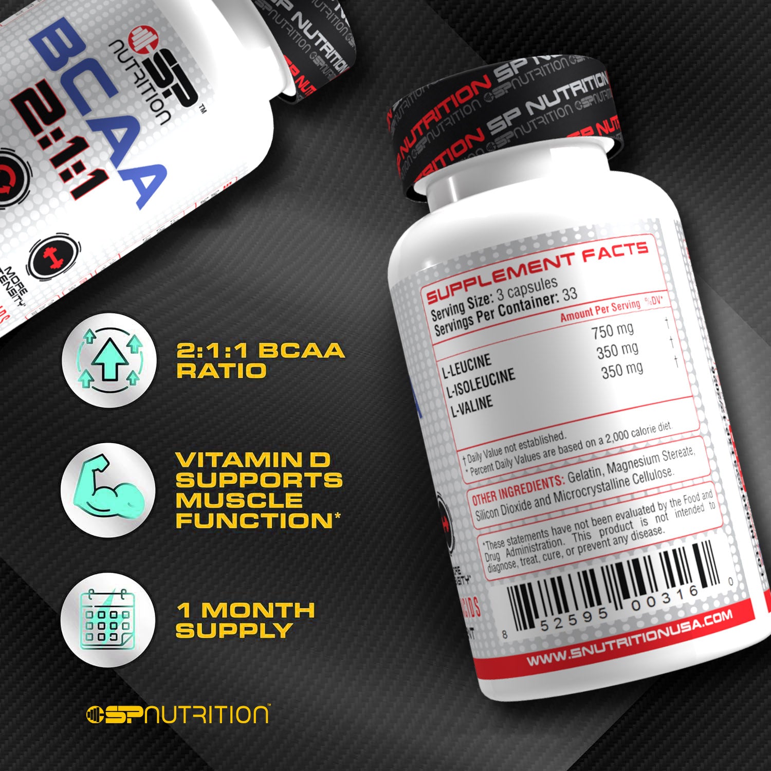 Our BCAA 2:1:1 capsules supplement is formulated to support muscle recovery, energy, and endurance during your workouts. Each serving contains 3 capsules, providing a powerful dose of essential amino acids in an optimal 2:1:1 ratio.