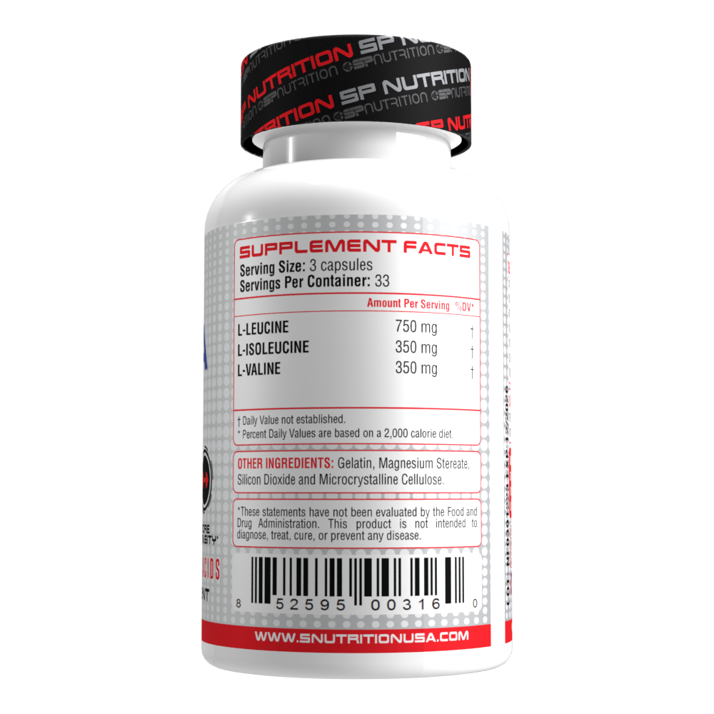 L-Leucine, L-Isoleucine, L-Valine, vegetable gelatin capsule, and other natural excipients.