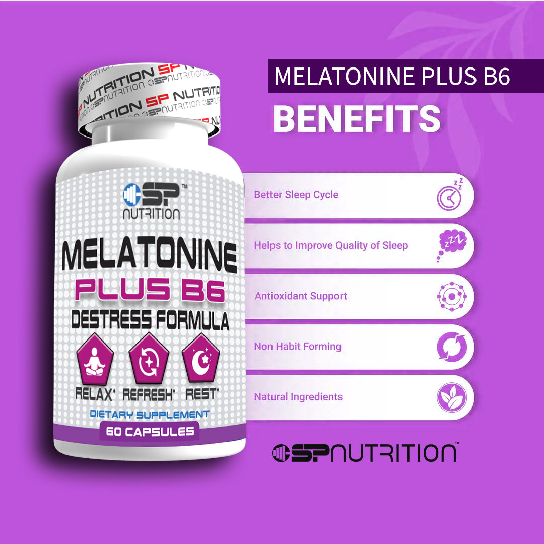 Enhance your sleep quality and wake up refreshed with MELATONIN PLUS B6. Each capsule contains 5 mg of melatonin, a natural hormone that helps regulate your sleep-wake cycle. Fortified with vitamin B6 to support better absorption and effectiveness of melatonin in your body.