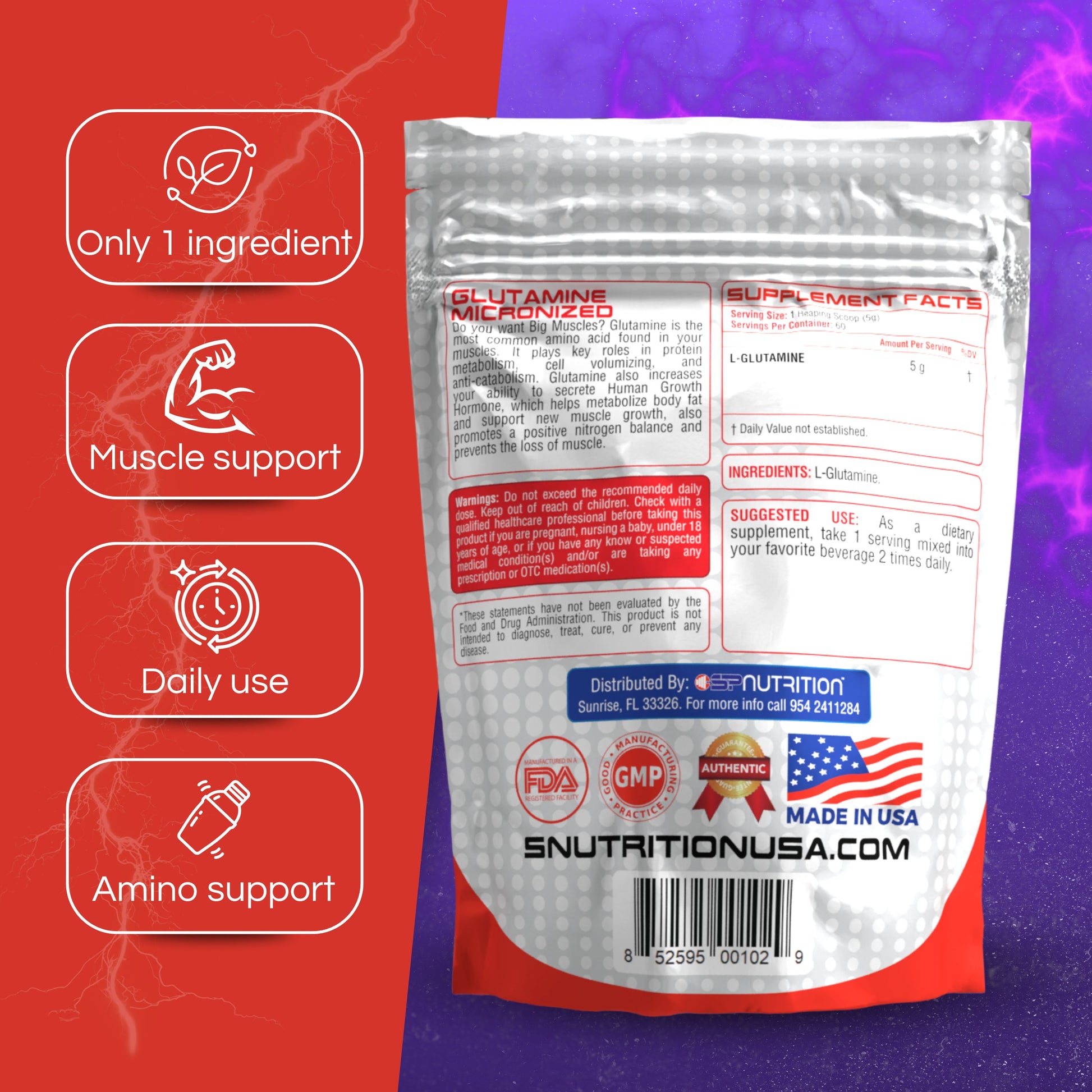This formula contains micronized glutamine, allowing it to dissolve easily and mix smoothly with water, juice, or protein shakes.
