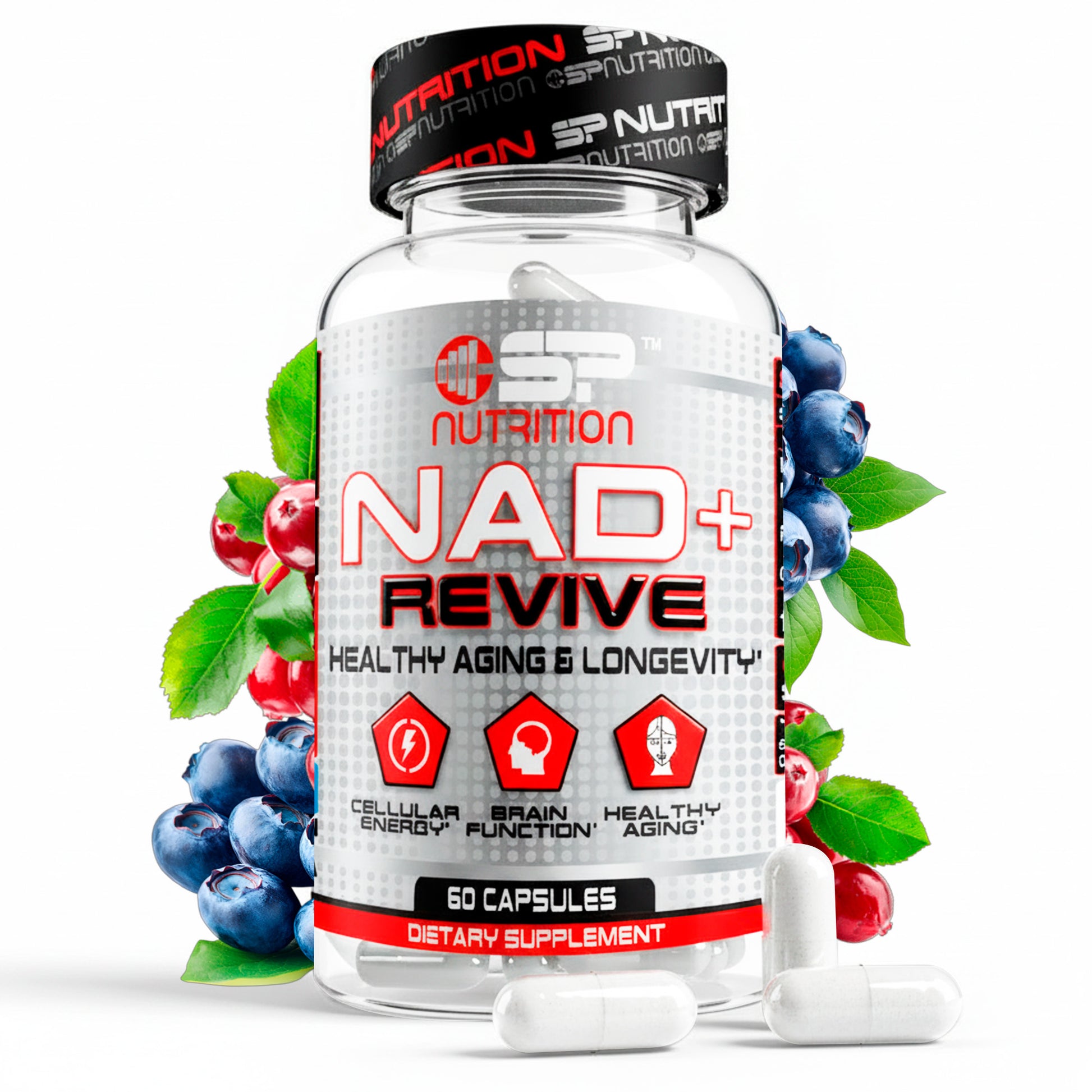 NAD+REVIVE is formulated to help replenish NAD+ levels naturally*, supporting healthier aging*, improved energy*, and enhanced cellular performance*. This advanced blend combines Nicotinamide Adenine Dinucleotide (NAD+) with Nicotinamide Riboside (NR), a highly bioavailable precursor that helps raise NAD+ levels efficiently*.